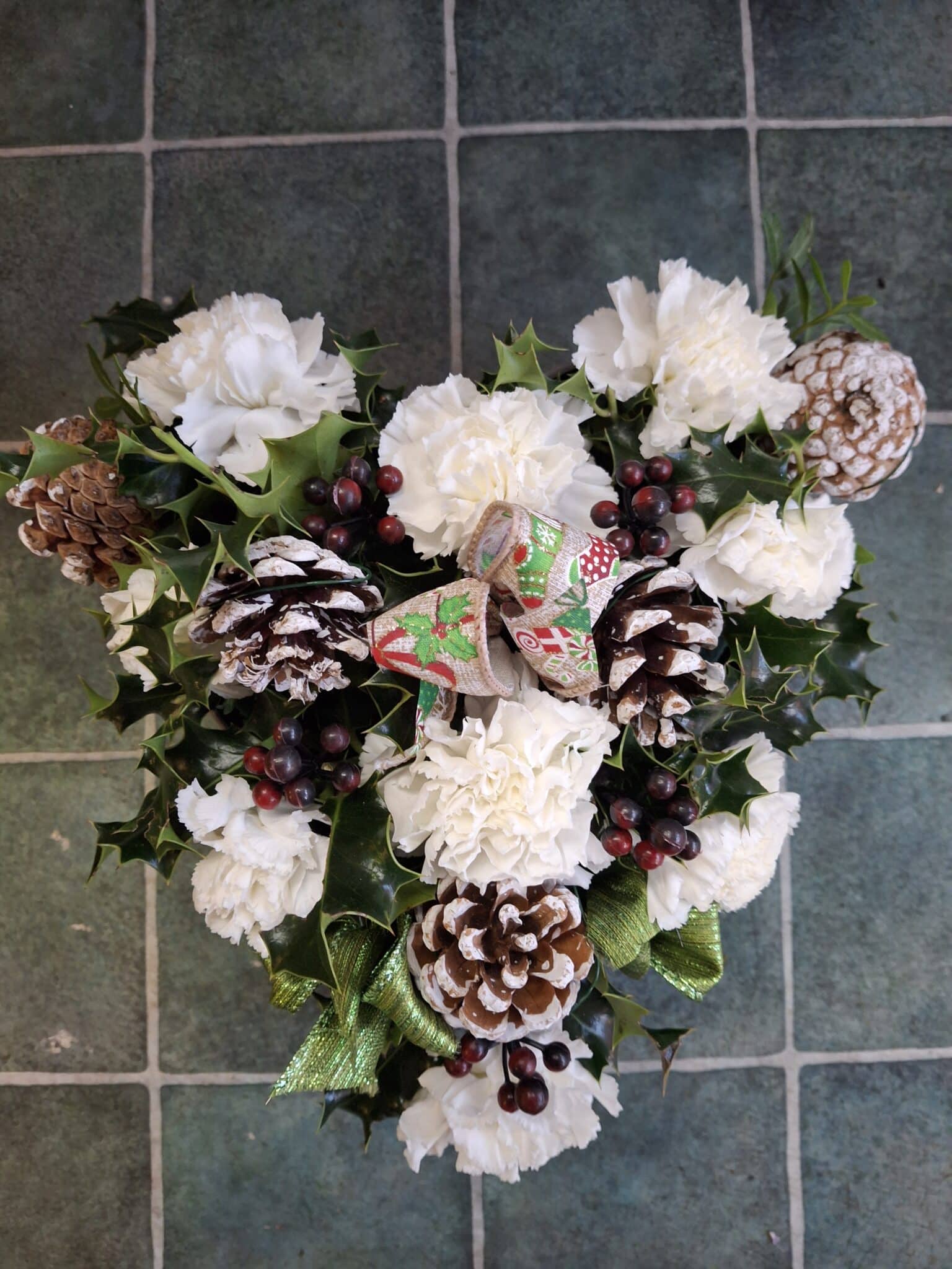 Our fresh flower heart is fresh flowers in a heart shaped container
